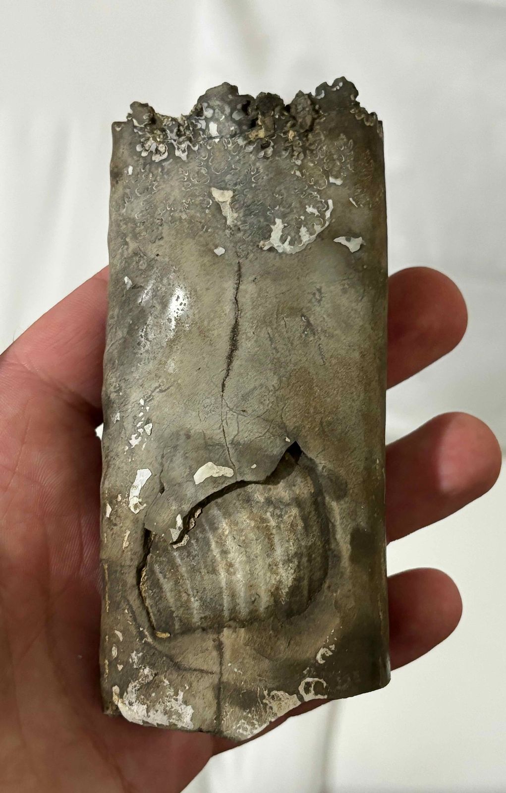 Taxon: Baculites cuneatus & Inoceramus sp. (straight-shelled ammonite & an oyster)